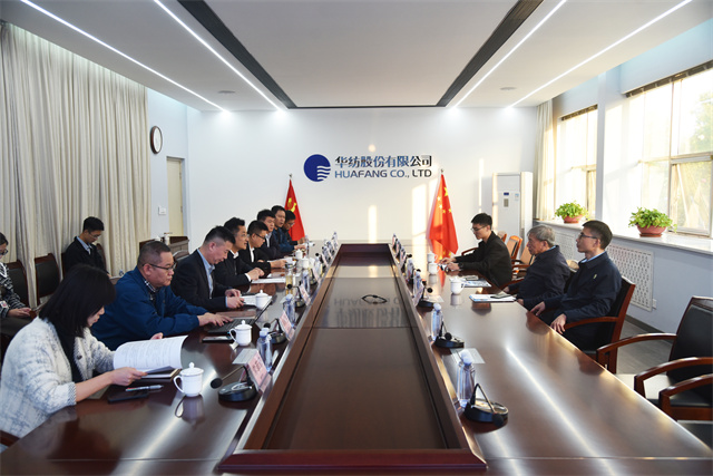 參觀結(jié)束后,座談交流會在一樓會議室召開,濱城區(qū)委常委、組織部部長李一鳴主持會議。會上,閆英山對劉嘉麒院士一行的到來致以熱烈歡迎,并詳細(xì)介紹了企業(yè)發(fā)展歷程、生產(chǎn)運(yùn)營、人才建設(shè)、技術(shù)研發(fā)及成果轉(zhuǎn)化等方面的情況。劉嘉麒院士也介紹了自己的研究領(lǐng)域和豐碩成果。隨后,雙方圍繞技術(shù)合作展開深入交流。劉嘉麒院士對公司在技術(shù)創(chuàng)新和產(chǎn)品研發(fā)方面取得的成就給予高度評價,并表示希望未來能與華紡在相關(guān)領(lǐng)域開展更廣泛合作,共同推動紡織行業(yè)的科技進(jìn)步與創(chuàng)新發(fā)展。