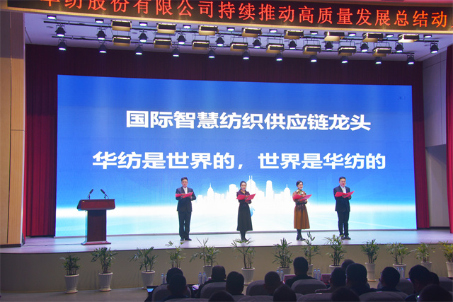 1月1日,華紡股份有限公司持續(xù)推動(dòng)高質(zhì)量發(fā)展總結(jié)動(dòng)員大會(huì)在會(huì)議中心一號(hào)會(huì)議室隆重召開(kāi)。公司黨委書(shū)記、董事長(zhǎng)盛守祥,公司黨委、行政班子成員、戰(zhàn)略委員會(huì)成員、2024年度退休員工代表、各部門(mén)主要負(fù)責(zé)同志以及在職員工代表等五百余人齊聚一堂,總結(jié)2024榮光,展望2025宏圖,表彰優(yōu)秀、激勵(lì)先進(jìn)、凝聚共識(shí)、匯聚力量,以昂揚(yáng)的姿態(tài)譜寫(xiě)公司高質(zhì)量發(fā)展的嶄新篇章。